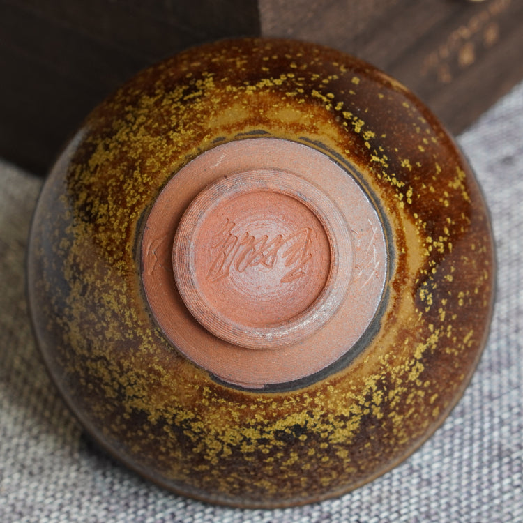 Kowloon Kiln Dangerous Agile Firewood Burning Jianzhan Golden Armor Flower Moon Night Handmade Tea Tasting Master Teacup Treasure Scroll Certificate